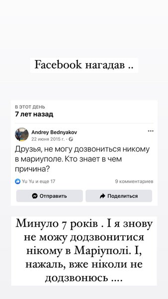 "Прошло 7 лет. И я снова не могу дозвониться никому в Мариуполе. И, к сожалению, уже никогда не дозвонюсь", — прокомментировал ведущий тревел-программы "Орел и решка" свой архивный пост.