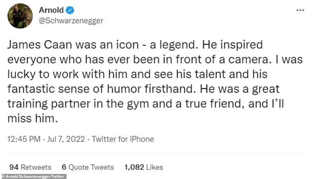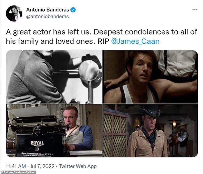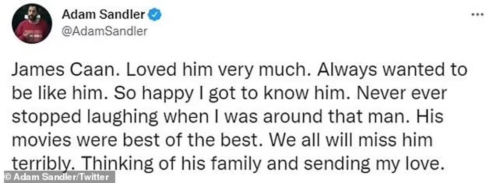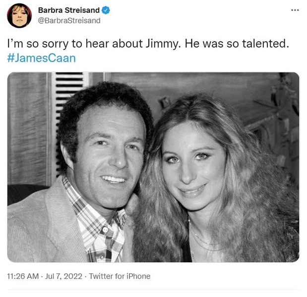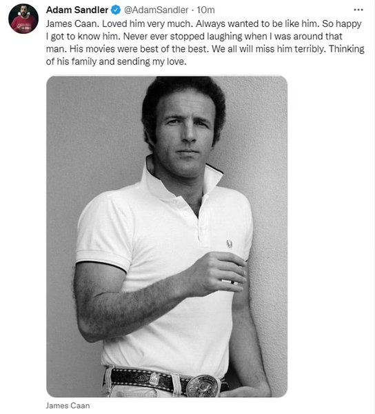 Друзья и коллеги уже высказали свои соболезнования семье и опубликвали посты в память об умершем актере. Одним из первых это сделал Аль Пачино, сыгравший вместе в Кааном в "Крестном отце":