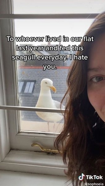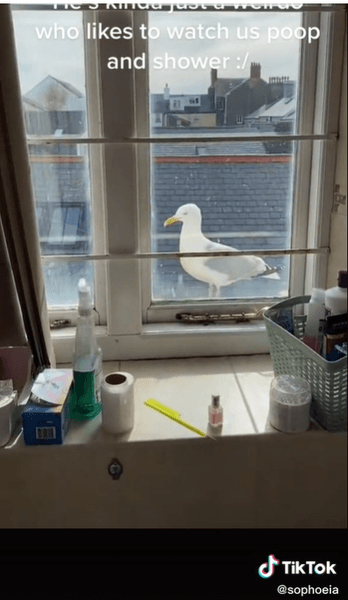 19-летняя студентка София из Великобритании жалуется на чайку, которая ежедневно прилетает к окну ее ванной комнаты в студенческой квартире в 17 часов и настойчиво наблюдает за девушкой. Об этом София рассказывает в TikTok.
