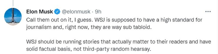 "Предполагается, что WSJ придерживается высоких стандартов журналистики, а сейчас они слишком малозначительны для таблоидов. WSJ должен публиковать истории, которые действительно важны для их читателей и имеют прочную фактическую основу, а не случайные слухи третьих лиц".