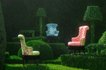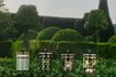 Элегантным фоном для презентации предметов интерьера, посуды и мебели послужил пышный сад с мебелью из зелени.