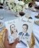 Как видно на снимках, свадьба была продумана до мелочей. Церемония проходила на свежем воздухе. Стол был декорирован зеленой оградой, к которой были прикреплены люстры с лампами в виде свеч. Подружки невесты тщательно соблюдали дресс-код, выбрав для церемонии лаконичные платья оливкового цвета. А места для гостей были обозначены открытками с их акварельными портретами.