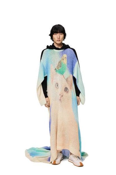 Испанский модный дом Loewe покорил в новом сезоне своих поклонников шелковыми рубашками и джинсами с высокой посадкой с кошачьим принтом. Кроме одежды, бренд представил аксессуары на кошачью тематику — массивные подвески с головами животных и сумочки в виде кошек.