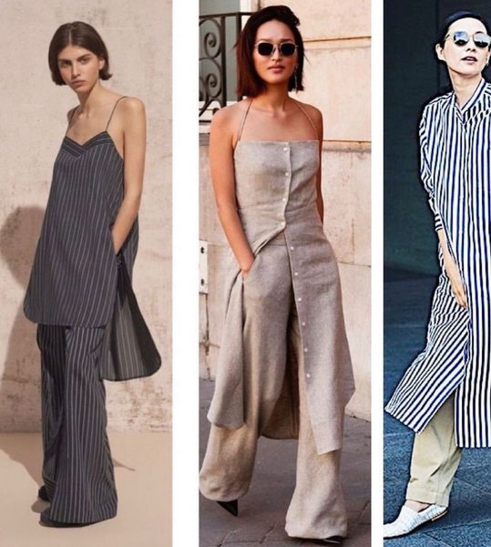 В новом сезоне дизайнеры предлагают вновь вернуться к трендовому сочетанию, актуальному для прохладного времени года — ансамблю платья с брюками.