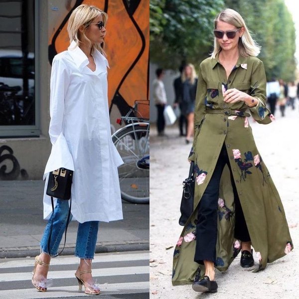 Платья-рубашки хорошо смотрятся с зауженными брюками или джинсами skinny. Это наиболее простой и удачный ансамбль, если вам интересно попробовать многослойный образ без особых экспериментов. Такое сочетание выглядит органично и подойдет для тех модниц, которые хотят оставаться в тренде, но пока не готовы к неординарным ансамблям.