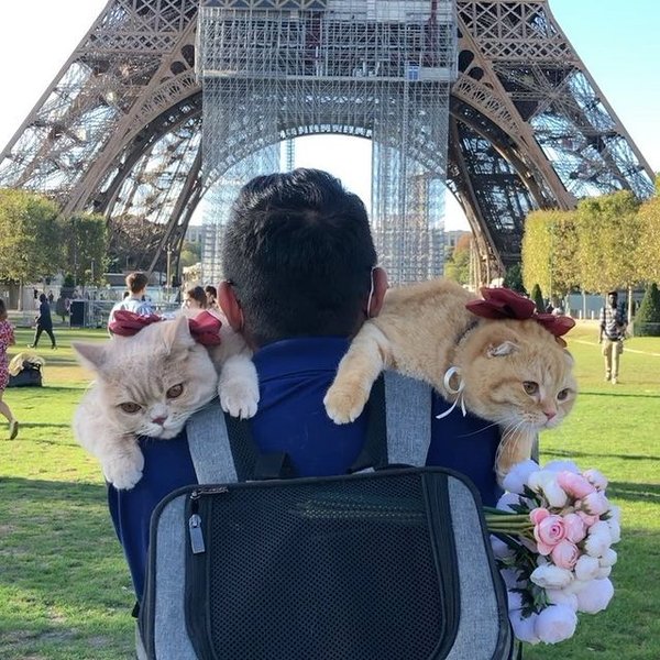 Юрист Дэн Нгуен из Нью-Йорка отправился в кругосветное путешествие, прихватив с собой не только жену Оливию, но и трех кошек, две из которых породы шотландская вислоухая по кличке Спанч Кейк, Мокко, а третья – британская короткошерстная по кличке Донат. О приключениях в поездке он рассказывал в Instagram, где на него подписаны 318 тысяч человек, и в TikTok с двумя сотнями тысяч подписчиков.