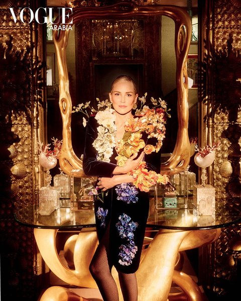 64-летняя американская актриса Шэрон Стоун стала одной из героинь обложки сентябрьского номера Vogue Arabia, появившись на главной странице издания сразу в двух нарядах от известнейших мировых дизайнеров.