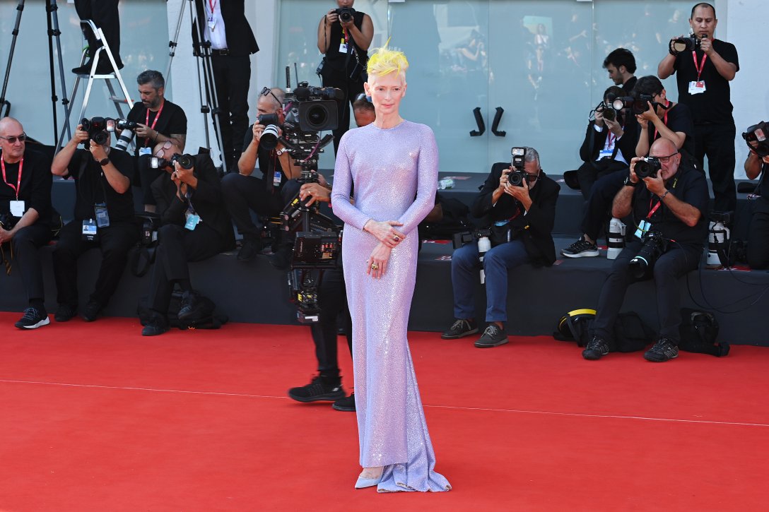61-летняя Тильда Суинтон появилась на красной дорожке Венецианского кинофестиваля в потрясающем сиреневом платье и с новым цветом волос. Об этом пишет The Playlist.