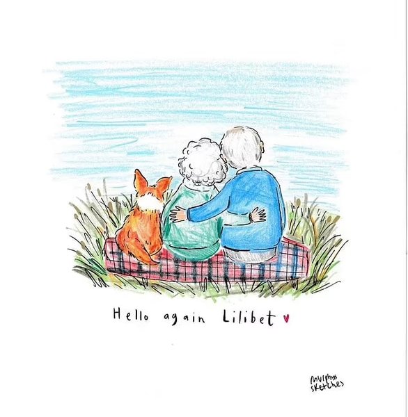 "Снова привет, Лилибет". Сеть заполонили рисунки королевы, которая воссоединилась с мужем