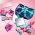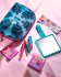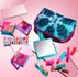 В линейку вошли две палитры теней для век, три оттенка для губ, зеркало, косметичка и наклейки для ногтей.