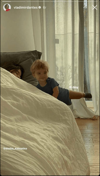Дантес (настоящая фамилия певца — Гудков) поделился снимком, на котором его новая возлюбленная, киевская ресторатор и дизайнер Даша Кацурина еще спит, а возле нее на кровати сидит ее младший сын Иван.