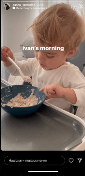 В свою очередь Даша показала утро сына от Михаила Кацурина и его завтрак.