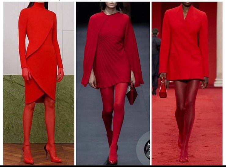 Тотальная страсть. Прозрачность и плотность красных колготок может быть абсолютно любой. Особенно красиво они смотрятся в монохронных красных аутфитах.