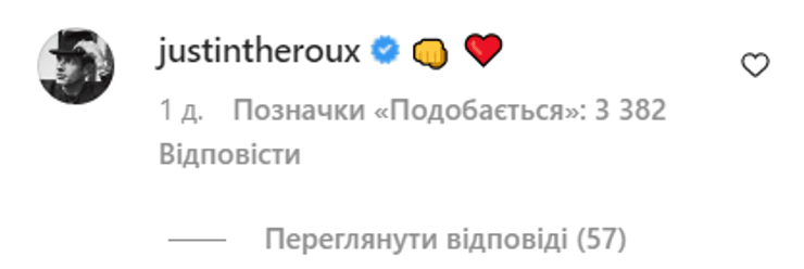 Тем временем Джастин Теру прокомментировал публикацию своей бывшей жены, оставив смайлик в форме кулака и красное сердечко. Комментарий актера быстро набрал несколько тысяч лайков.
