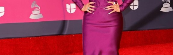 Агилера сделала аккуратную укладку, макияж с лавандовыми тенями на веках и длинными ресницами. В ушах у нее были длинные серьги с бриллиантами, а на пальцах – бриллиантовые кольца. Длинный маникюр с эффектом "кошачий глаз" завершил аутфит знаменитости.