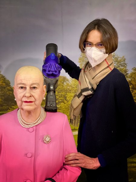 Очевидно, это не самая удачная восковая фигура Елизаветы. Для сравнения можно посмотреть на представленную в январе 2022 года в самом известном немецком музее восковых фигур Panoptikum в Гамбурге восковую копию британской королевы.