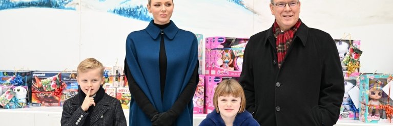Альбер и Шарлен с детьми раздают подарки | Фото: Palais Princier de Monaco - Prince's Palace of Monaco