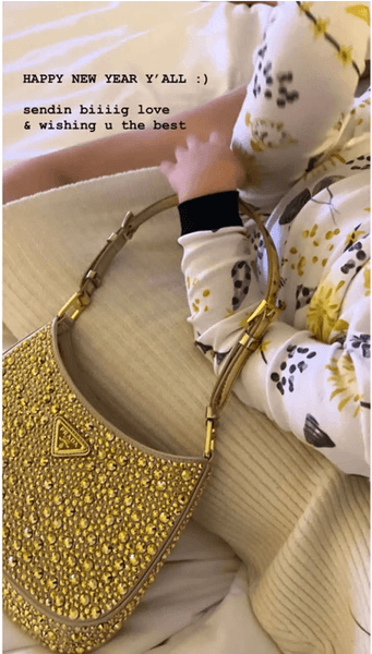На первенце звезды подиумов палестинского происхождения была черно-золотая пижама, покрытая праздничным принтом в сочетании с сумкой Prada Cleo, украшенной кристаллами. Стоимость аксессуара малыша составляет 3700 долларов (около 150 тысяч гривен).