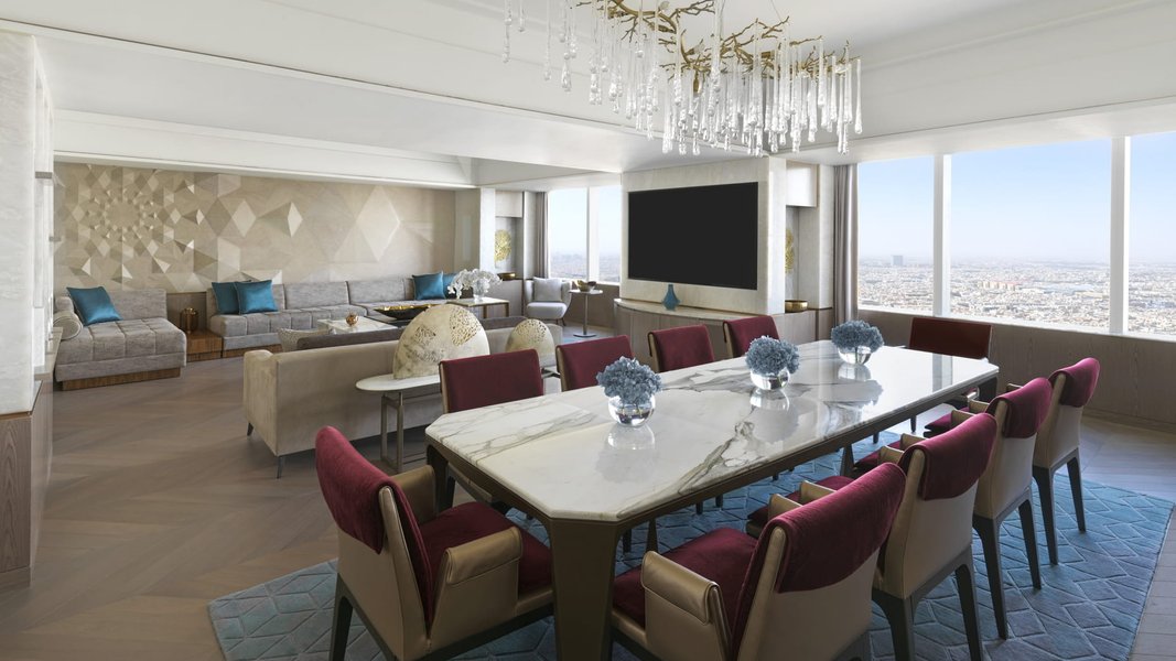 Гигантский номер забронирован на месяц, а Kingdom Suite — один из лучших в 99-этажном здании. Номер занимает два этажа и включает гостиную, личный кабинет, столовую и медиа-зал.