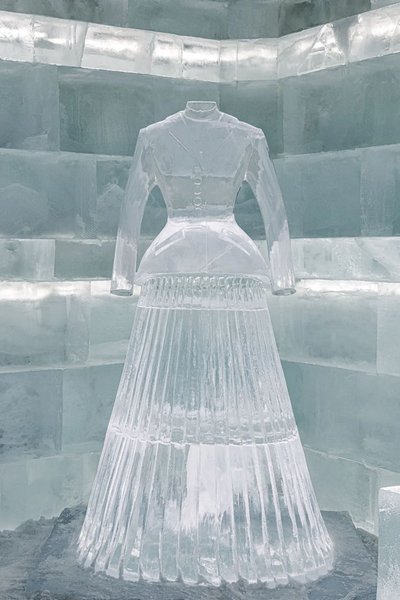Внутри здания – культовые вещи бренда, тоже созданные изо льда.