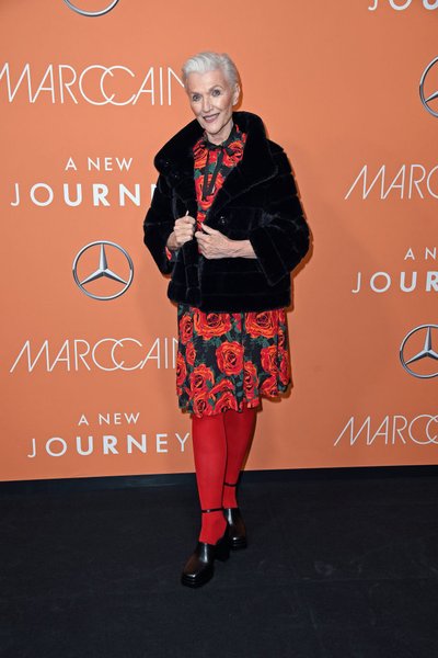 В ярких красных колготках: Мэй Маск на Неделе моды в Берлине