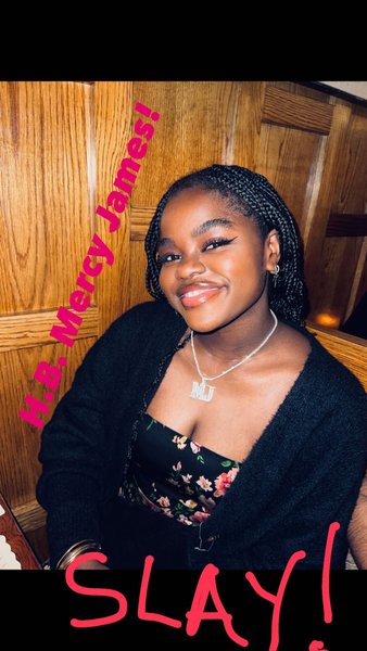Вся семья нарядилась в праздничную одежду в черной цветовой гамме. Сама же именинница выбрала черное длинное платье с цветастым рисунком.