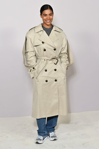 В кожаном пальто и тренче: Тина Кунаки показала два образа на Парижской неделе моды