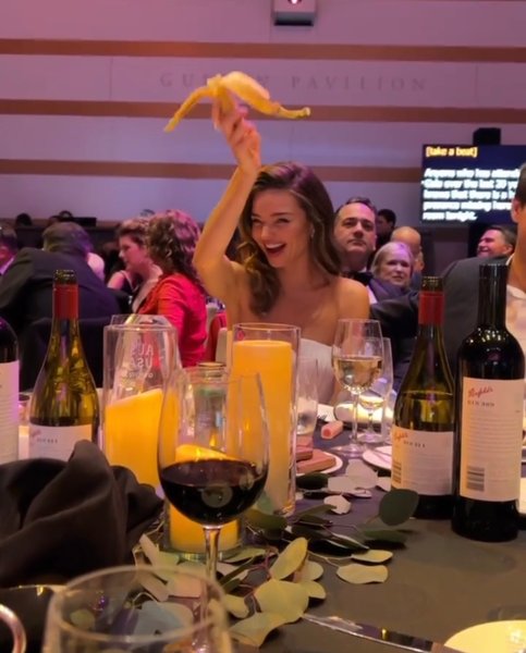 39-летняя австралийская модель и экс-"ангел" Victoria's Secret Миранда Керр вместе с супругом Эваном Шпигелем посетили гала-концерт G'Day USA Arts Gala в культурном центре Skirball в Лос-Анджелесе. Модель в очередной раз подтвердила, что следит за своим питанием, даже когда выходит в свет. В Instagram модель опубликовала видео и показала, как ела банан и пила кокосовую воду, пока другие гости пили вино и ели разные закуски.