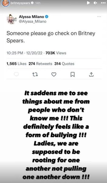 Бритни не стала молчать, опубликовала скриншот обращения Алиссы и обратилась к ней.