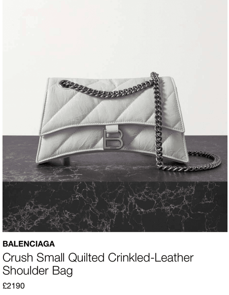 Действительно, культовые сумки полагаются на узнаваемые формы, чтобы выделить их среди других. Компания Balenciaga усовершенствовала это, когда еще в 2019 году выпустила сумку Hourglass с изогнутым основанием с эффектными заостренными краями и брендовым мотивом B.