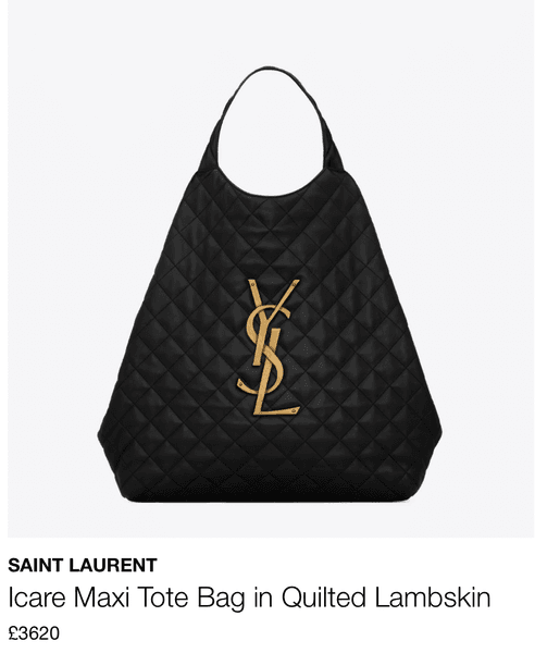 После долгого владычества маленьких и микросумок Saint Lauren Icare снова ввел макси как желаемый размер. Стебаный шоппинг-тоут можно увидеть почти на каждом знаменитом плече, от Лауры Харриер до Зои Кравитц и Хейли Бибер.