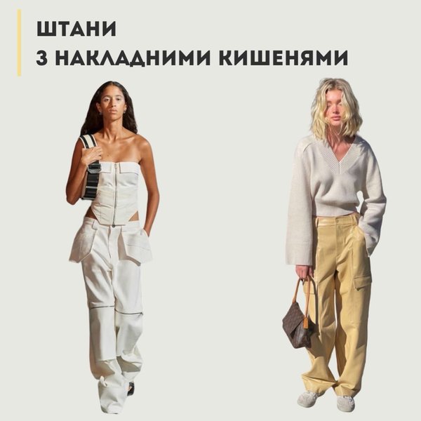 Известные своей практичностью брюки – снова на пике моды. Накладные карманы делают их не только удобными, но и очень актуальными. К ним относятся брюки-карго, модные широкие джинсы и даже модели спортивных брюк, тоже с накладными карманами.