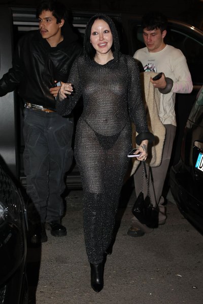 23-летняя американская певица и актриса была без бюстгальтера в блестящем платье с капюшоном, под которым не было ничего, кроме черных стрингов.