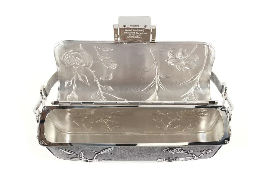 В честь 25-летия легендарной сумки Baguette, созданной в 1997 году Сильвией Вентурини для Fendi, римский модный дом роскоши в коллаборации с ювелирным брендом Tiffany & Co представил полноразмерный аксессуар полностью из стерлингового серебра (925 проба). Сумка Baguette, которую носят под мышкой, как батон багета, стала культовым объектом, культурным явлением, которое сразу произвело революцию в индустрии моды, определив архетип стиля.
