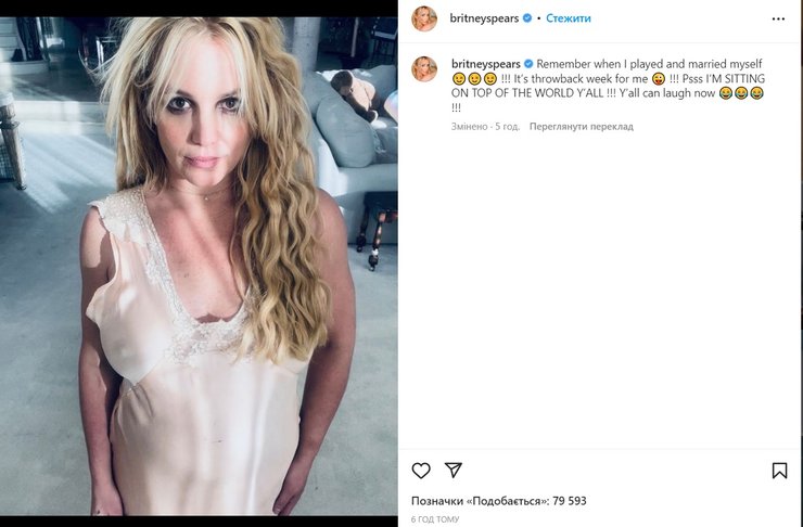 Ранее Бритни рассказывала, что она решила жениться сама на себе, опубликовав кадры, где она в той же сорочке и с фатой на голове.