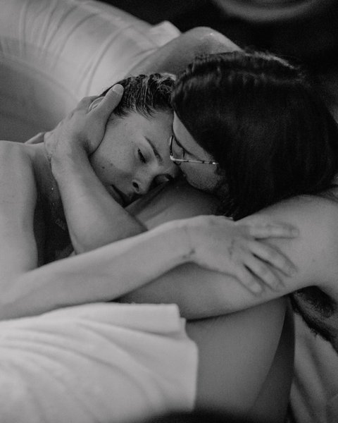 Как видно на фото, рожала Румер дома, в бассейне с водой. Во время схваток ее поддерживали мать и сестры. Тут же есть снимок, где Румер, счастливо улібаясь, держит на груди новорожденную девочку.