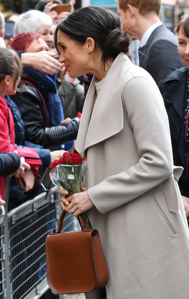 Герцогиня Сассекская "выгуляла" свою каштановую сумочку Bloomsbury ($477) во время поездки в Северную Ирландию в 2018 году.
