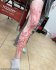 Татуировка представляла собой зазубренные, похожие на шипы выступы в зеркальном отображении, которые чем-то напоминали чернильные пятна из теста Роршаха. Рисунок начинается чуть выше ее лодыжки, а затем продолжается далеко за коленной чашечкой на бедре.