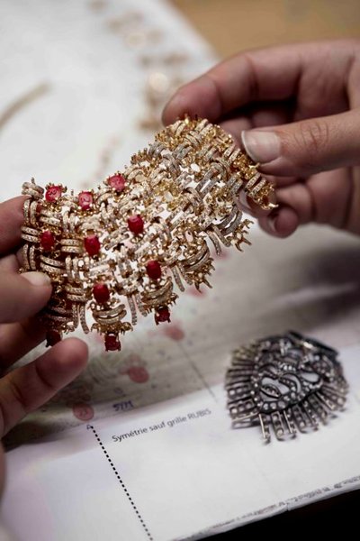 Съемный мотив в виде головы льва можно носить как брошь, а бриллиант огранки "груша" 10,17, стекающий с кошачьей гривы, можно отсоединить и носить как кольцо. По его словам, колье завершает цепочка в знак уважения к той, что заканчивала одежду Chanel, чтобы помочь им безупречно падать, но также и придать льву "больше рок-н-ролльного" настроения.