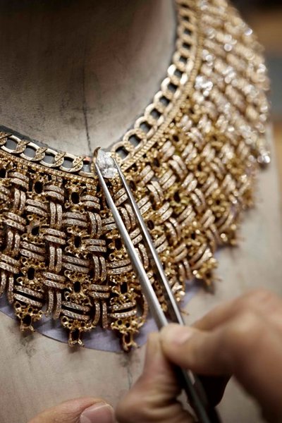 Дизайн пяти тем, в которых используется твид, варьируется от плотно переплетенных мотивов до почти деконструированной интерпретации. Например, колье Tweed Etoilé, в котором намек на плотное плетение по бокам шеи дополнен желтыми сапфирами огранки "кушон" весом 14,71 карата, переходящим в пять нитей из белого золота, желтого золота, лазурита и оникса, и выглядит, как сотканное или наоборот, размотанное.