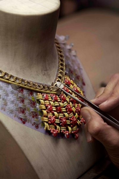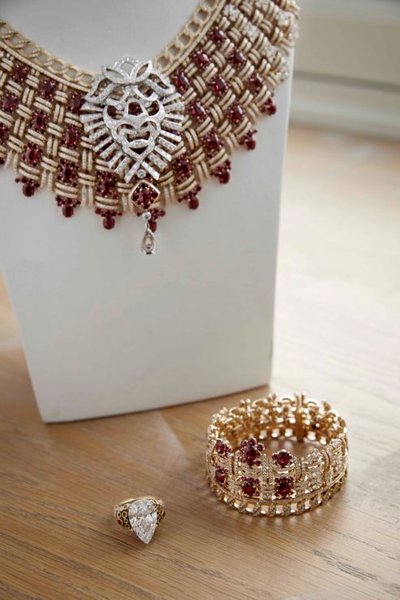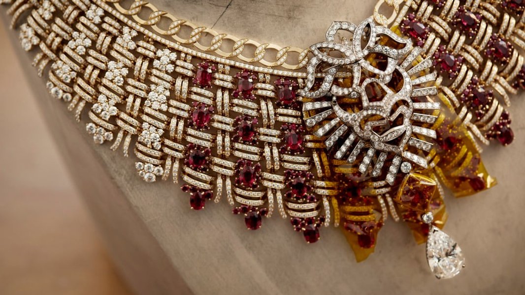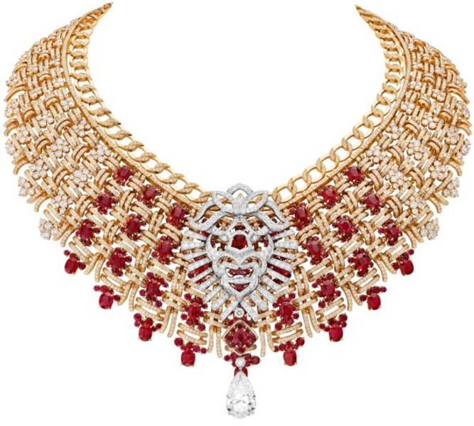 Главное украшение коллекции — колье Tweed Royal, пластрон из желтого золота с бриллиантами и 37 рубинами, отличающееся замысловатым переплетением, которое помогает ему плотно прилегать к коже, как "тканевая броня", задуманная Габриэль Шанель.