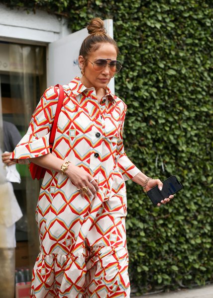 Артистка, недавно купившая дом за 60 миллионов долларов, надела хлопковое платье макси с геометрическим принтом La DoubleJ и белые туфли на платформе Gucci с серебряными дизайнерскими логотипами. Свой стильный ансамбль исполнительница дополнила солнцезащитными очками и красной сумкой Hermes, которая соответствовала цветам остальной части ее наряда.