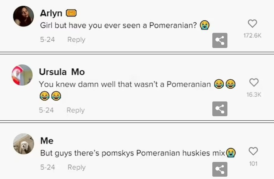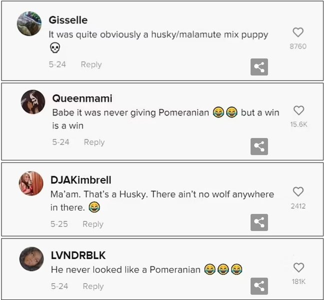 Видео с признаниями Аманды стало вирусным. 32-секундный клип начался с кадров, на которых девушка держит очаровательного черно-белого щенка, но явно не шпица. Затем показывается взросление щенка, который в итоге превратился в огромного пса.