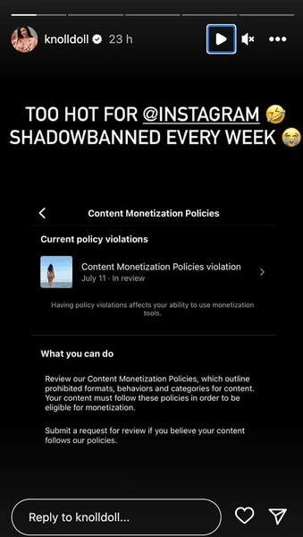 "Слишком жарко для Instagram", – подписала Кнол скрин с текстом предупреждения.