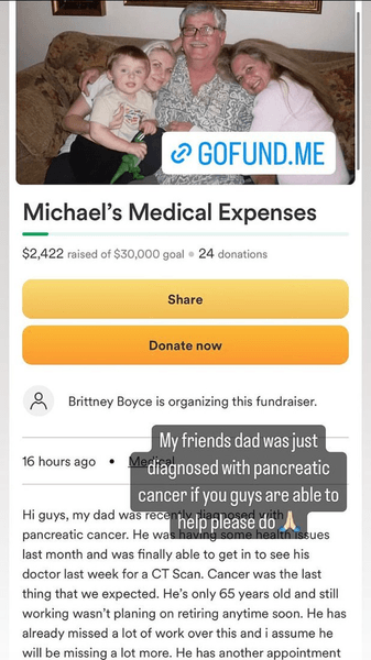 "У папы моей подруги только что диагностировали рак поджелудочной железы, если вы, друзья, можете помочь, пожалуйста", — написала 37-летняя актриса с прямой ссылкой на сбор средств.