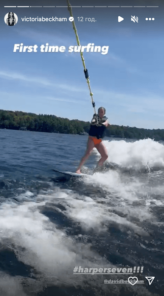В частности, британская певица и дизайнер показала, как они катаются на серфе и водных лыжах.