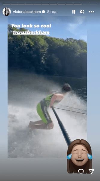 А Круз показался на видео в соцсети Виктории, демонстрируя свои навыки катания на серфе.