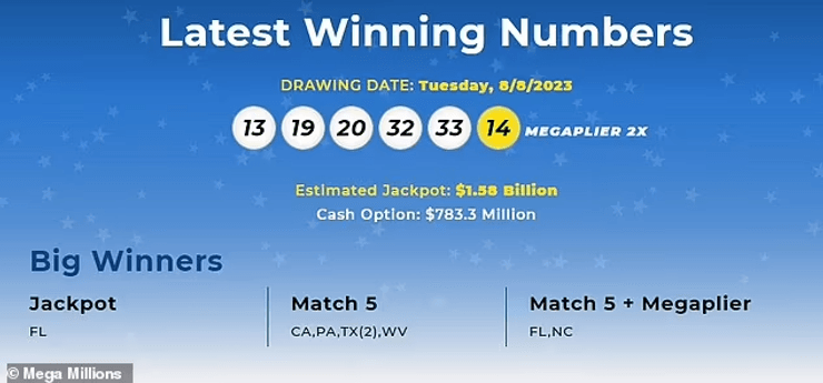 Согласно веб-сайту лотереи, выигрышными номерами были 13, 19, 20, 32, 33 с золотым Мегашаром №14.