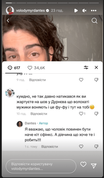 Дантес уже отреагировал и записал обращение в своих соцсетях, в котором призвал Машу Ефросинину, Алексея Дурнева, Алену Алену, Юлию Санину перестать "буллить" своего коллегу по цеху. А подписчикам музыкант ответил, что считает, что женщина имеет право делать то, что сама хочет.