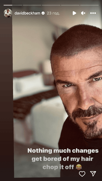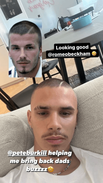 Дэвид не единственный из Бекхэмов, кто претерпел стилевую трансформацию. Буквально на прошлой неделе его средний сын Ромео, 20 лет, рассказал, что черпает вдохновение от своего папы-футболиста, опубликовав селфи своей гладко выбритой головы с линией сбоку.